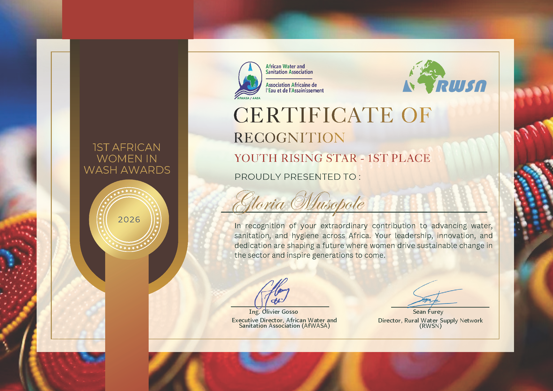 “We are delighted to inform you that you have been selected as a Winner of the Inaugural African Women in Water Awards 2026.”